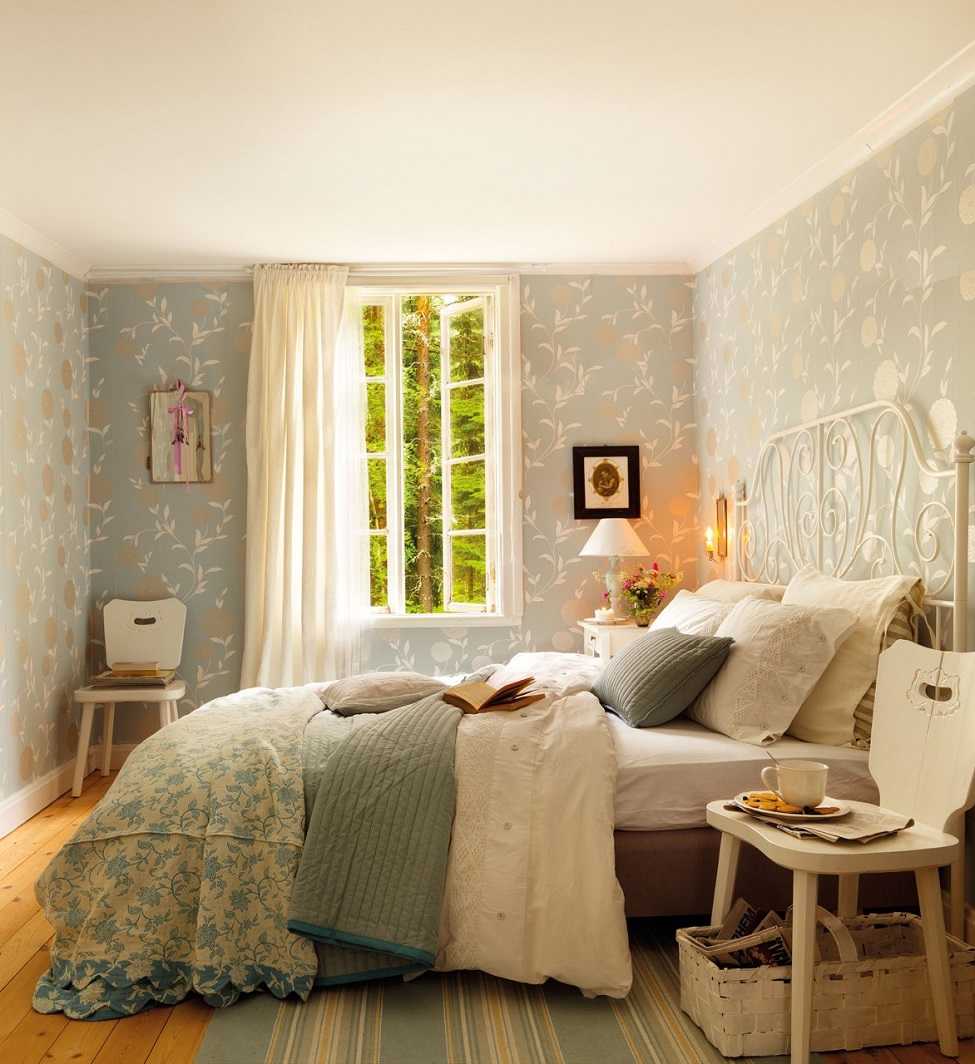 Стены: краска, штукатурка и обои для спальни в стиле прованс фото примеров