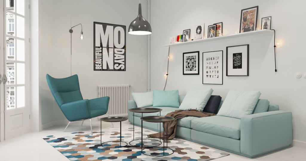 Маленькую гостиную в скандинавском стиле лучше оформлять в духе минимализма