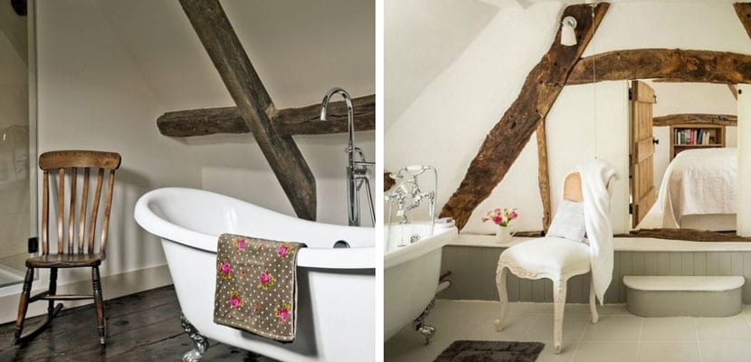 Дерево почти всегда будет главным героем, если нам нужна ванная комната в деревенском стиле. И одна из вещей, которые нам больше всего нравятся, — это прикосновение, которое деревянные балки. Нет ничего более аутентичного, чем деревянные балки, но они подходят не для всех ванных комнат и не во всех домах выглядят естественно. Если в доме они уже есть, то можно ими воспользоваться. Если нет, сделайте акцент на других элементах, например, на хорошем деревянном полу в темных тонах, так как он больше всего подходит в стиле рустик. Это должна быть несовершенная почва с обнаженными прожилками, которые не могут быть полностью одинаковыми. Но уже есть полы, подготовленные для этого деревенского стиля, которые можно купить и установить как есть.
