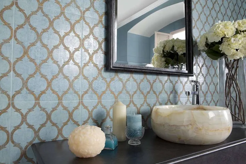 Чтобы не создать в ванной ощущение беспорядка, откажись от злоупотребления декоративными элементами. Пусть эту роль выполняют особенности отделочных материалов и текстиль. Например, на стене будут красиво смотреться мозаичные рисунки и орнаменты на плитке, придающие некоторую легкость и разнообразие.