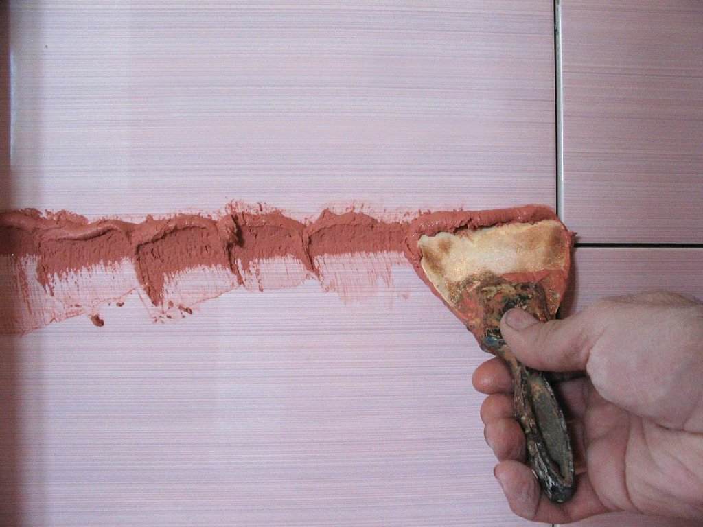 Для затирки, необходим жесткий резиновый шпатель (в труднодоступных местах полезен силиконовый шпатель).