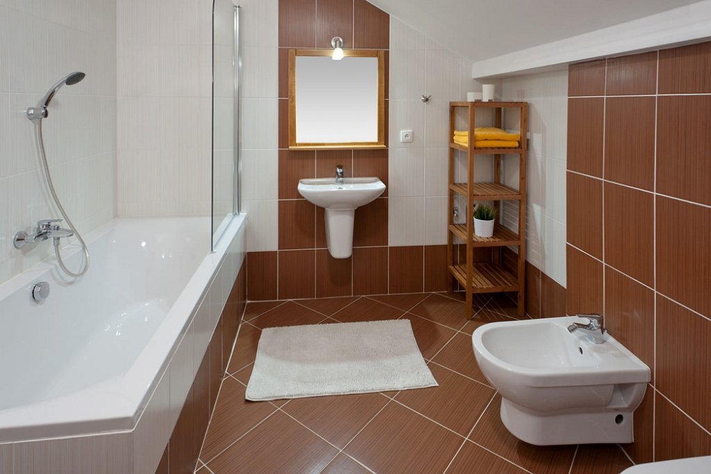 Для одного из цветов затирка будет в тон, а для другого — контрастная. Например, если соседствуют шоколадный и светло-бежевый цвета, можно взять светлую затирку. Она хорошо подойдет и к той, и к другой плитке и к тому же «подружит» их между собой. Если в ванной сочетаются черная плитка с белой, можно остановиться либо на черной, либо на белой затирке.