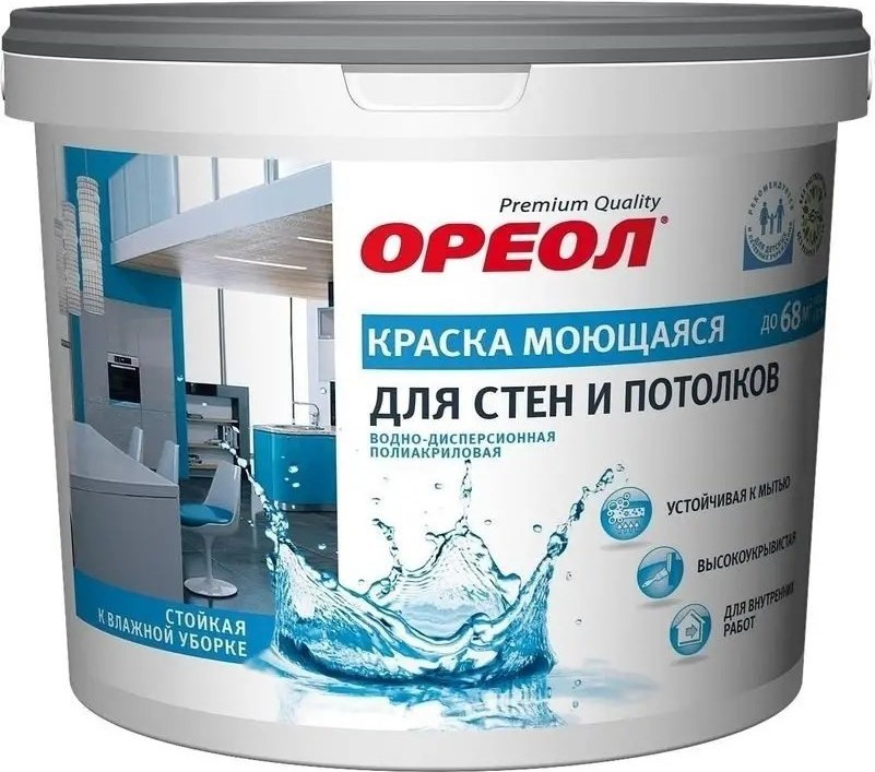 «Ореол» – лучшая моющаяся краска для потолка. Сохнет краска на потолках очень быстро, и уже буквально через полчаса ничем в доме не пахнет».