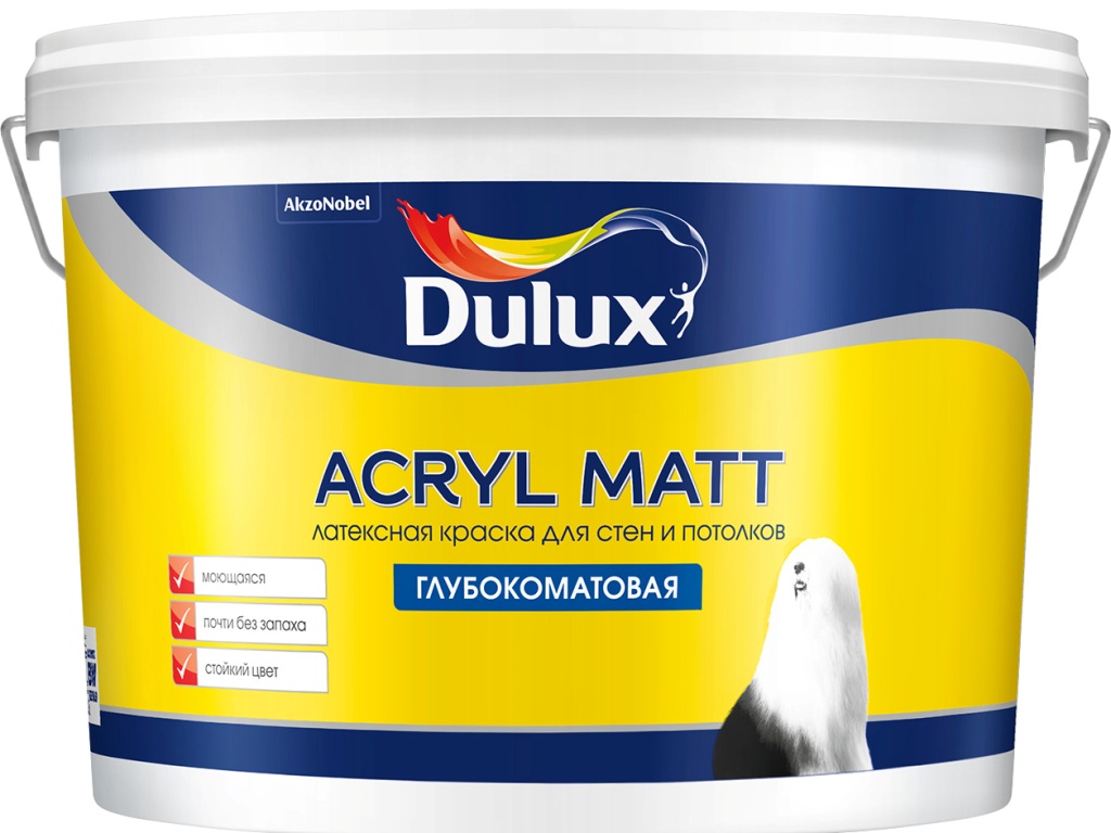 | Dulux | Матовая, светопоглощающая, отлично маскирует небольшие дефекты. Большой выбор цветовой гаммы. Можно наносить на неподготовленную поверхность |