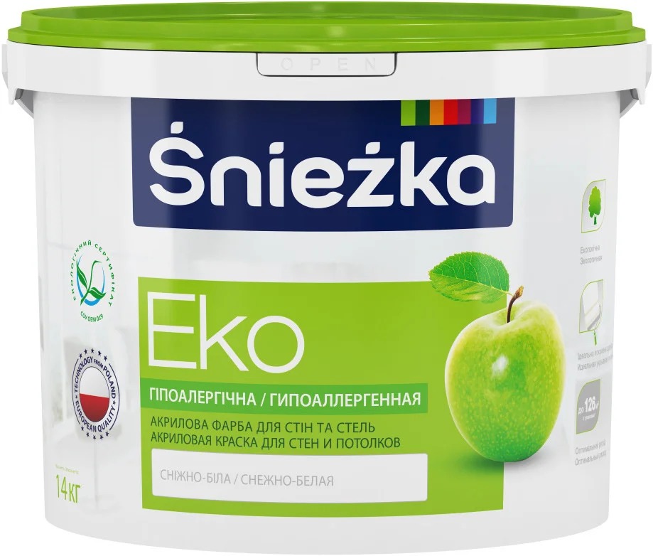 Бренд Sniezka существует на строительном рынке больше 20 лет. Для покраски потолков компания предлагает экологически чистую краску с гипоаллергенными свойствами.