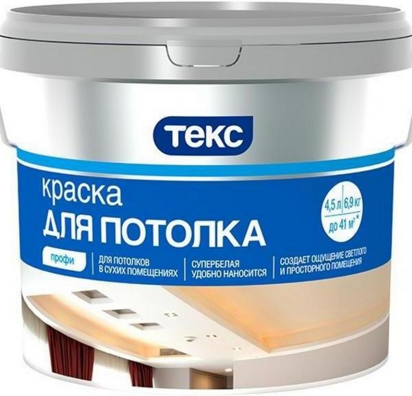 Если требуются лакокрасочные материалы самого высокого качества, возможно, краска Текс для потолка супербелая профи будет единственно правильным выбором.