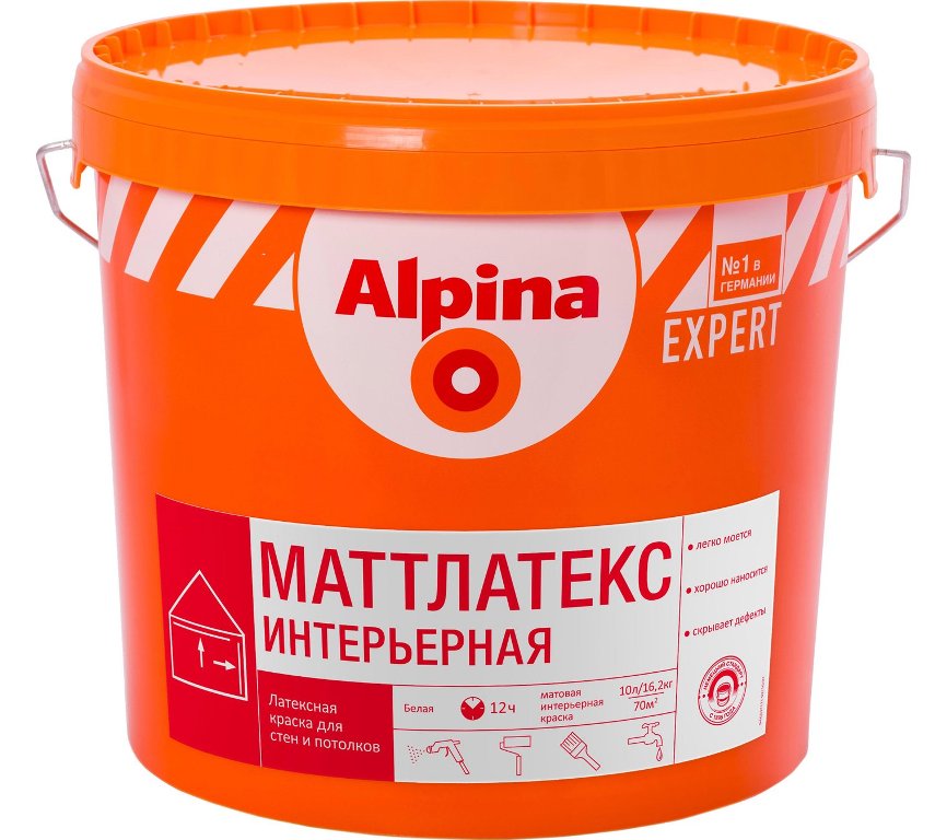 Краска Alpina – выбор профессионалов, поскольку она сочетает отменное качество, хорошие эксплуатационные свойства и длительный срок хранения.
