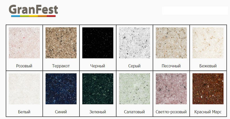 Цветовая карта моек из искусственного камня торговой марки GranFest: всего двенадцать различных цветов