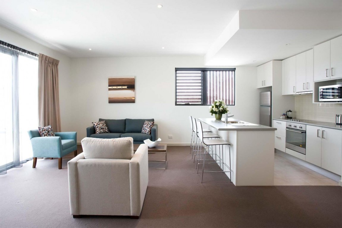Чаще всего кухня-гостиная получается путём объединения маленькой кухни с зоной холла и прихожей, а метраж такого многофункционального гибрида составляет 20-25 кв.м.