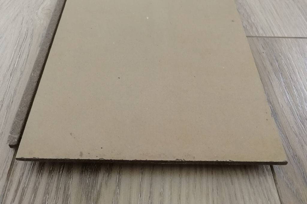 - Третий слой является основным. Здесь используется HDF‑плита собственного производства, которая изготавливается из древесного волокна в условиях его прессования. Плита обладает отличными влагостойкими характеристиками, устойчивостью на растяжение и высокими прочностными свойствами.