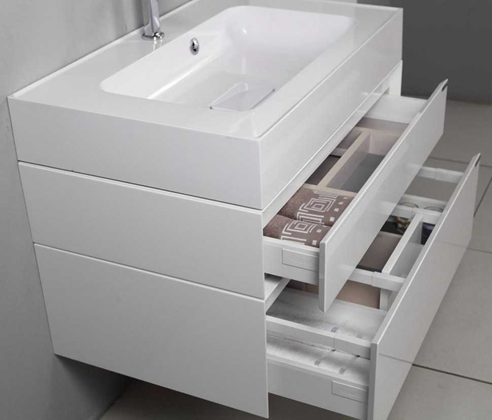 Необходимо учитывать несколько факторов: площадь помещения, подходящий к выбранному стилю дизайн, качество и прочность материалов, вместительность ящиков и шкафов. Исходя из выделенного бюджета, в первую очередь, покупаются тумбы под раковины и шкафы, а уже потом подбираются стеллажи и пеналы.