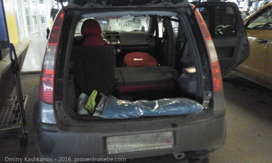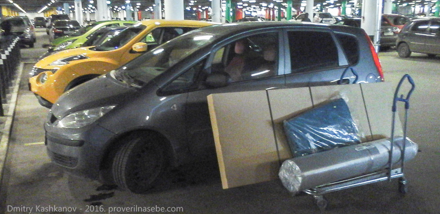 Думаю, вы с первого взгляда определили, что «не влезет». Признаться, я и сам не был до конца уверен в успехе. Но помня случай с перевозкой огромного холодильника, решил все же попробовать загрузить товар. К слову, народ на стоянке уже начал заинтересованно поглядывать в нашу с машиной сторону, видимо догадываясь о моих намерениях.