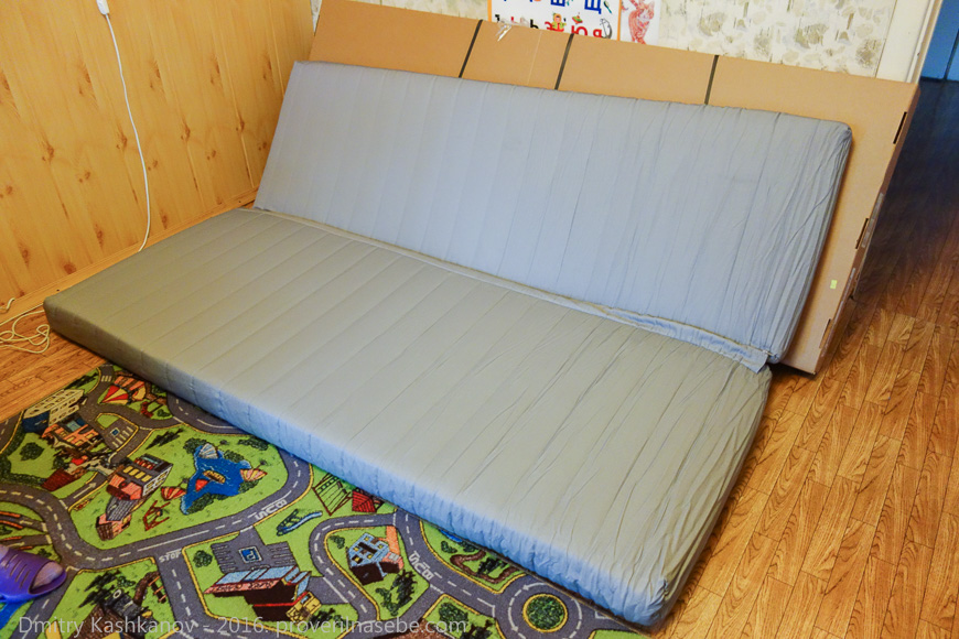 С другой стороны матраца имеются «липучки» чтобы крепиться к каркасу дивана. Иначе будет елозить ![]()