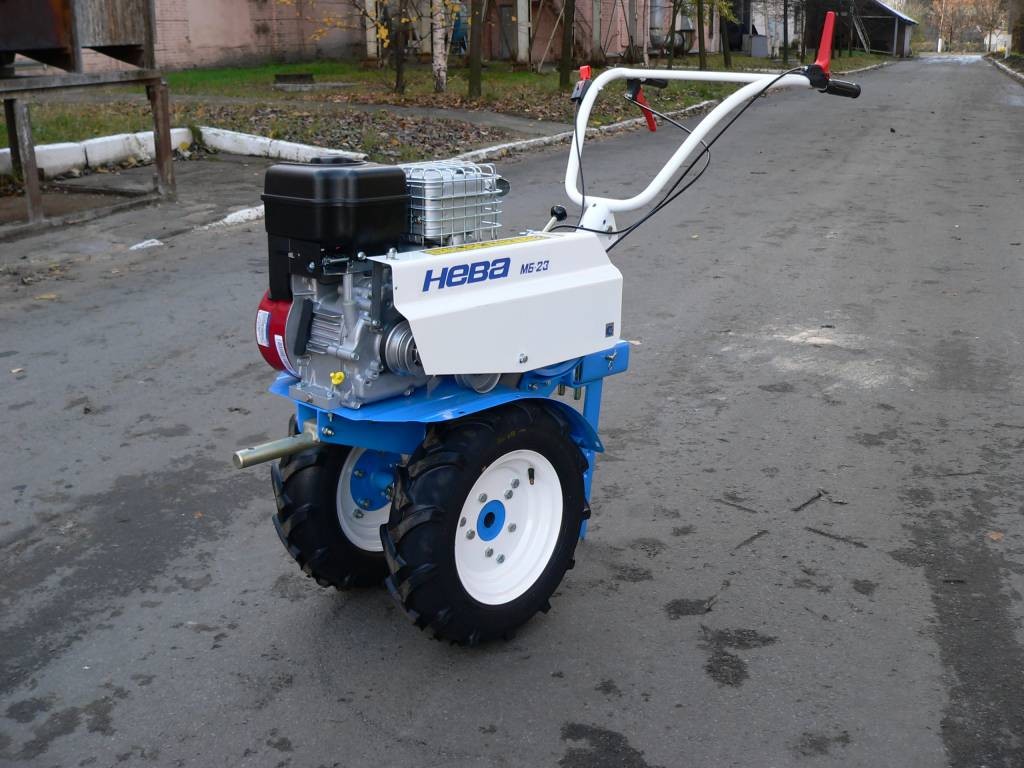 - Нева МБ-23Б-10,0 — мотоблок оснащен американским мотором мощностью 10 л. с. Этот агрегат предназначен для обработки тяжелых, уплотненных почв. Имеется возможность работы с 8 фрезами. Вес этого аппарата 104 кг. Глубина погружения до 30 см. Возможность транспортировки грузов до 500 кг.