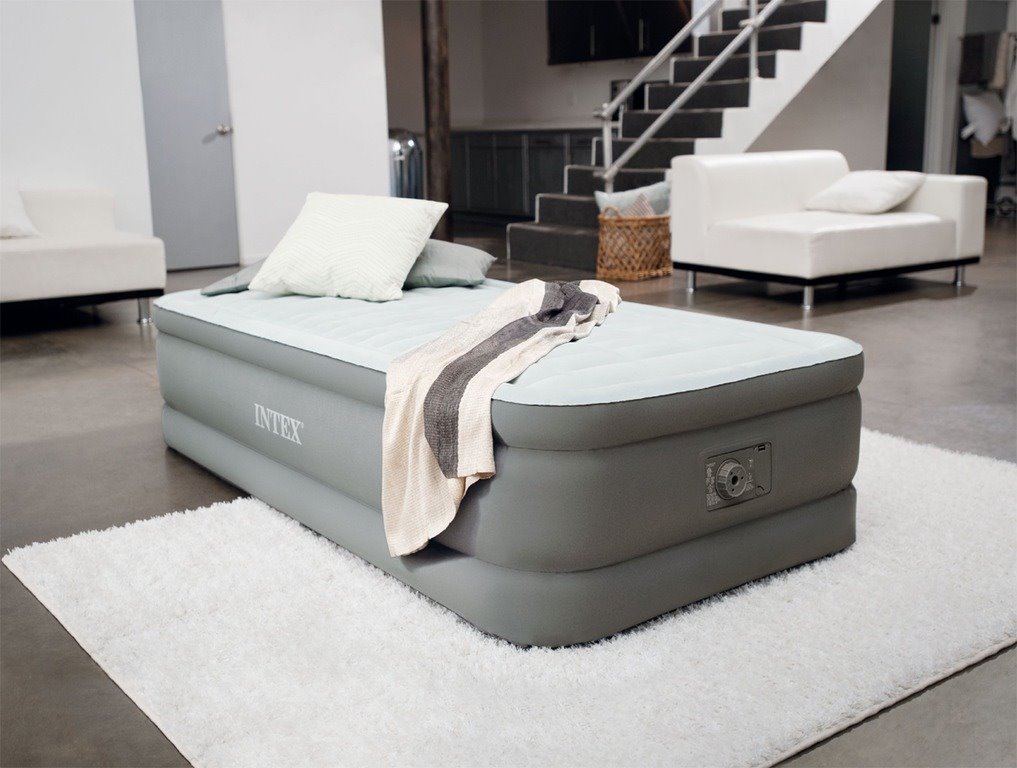 - Intex Comfort Plush – модель со встроенным насосом. Выдерживает вес до 273 килограмм. Бывает полуторной или двуспальной. Стоимость от 4600 рублей. Имеет виниловое покрытие. Удобна для длительного и кратковременного использования одним человеком.