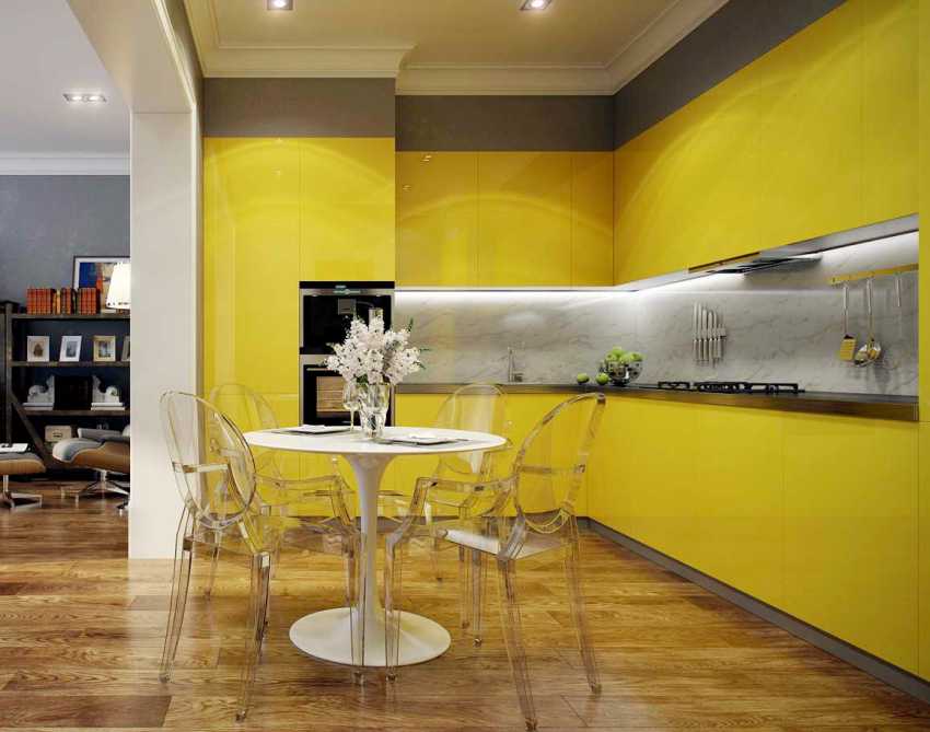Однако, прежде, чем вешать сюда стекло, стоит подумать о том, что оно неизбежно будет пачкаться и его придется часто мыть от брызг бульонов, жира, сока и от следов пара.