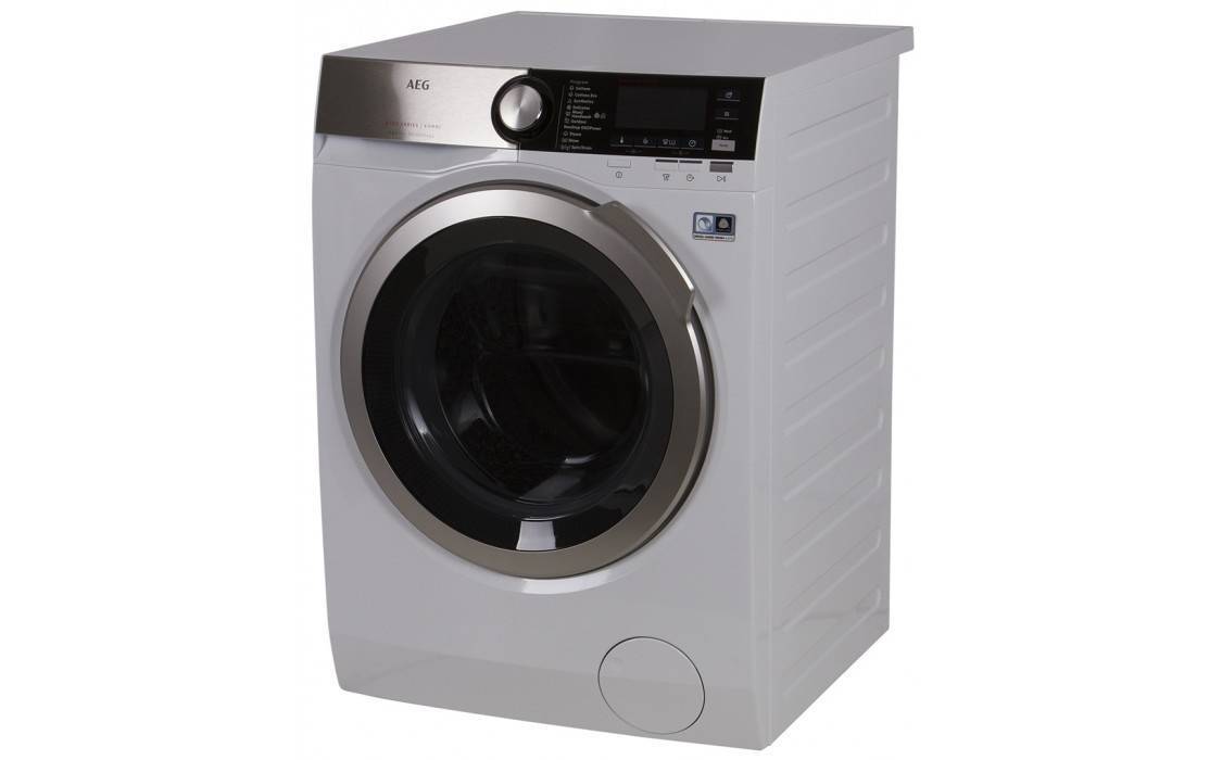 - «AEG L87695 WD»: представляет собой машинку с фронтальной загрузкой. При небольших габаритах (60*60*85) она обладает большой вместительностью: загрузить можно до 9 кг белья. Также есть функция сушки, но за один раз получится загрузить до 6-7 кг. Имеет наиболее выгодные параметры энергопотребления, стирки и отжима (все три «А»), также обладает полной защитой от протечек и от детей.