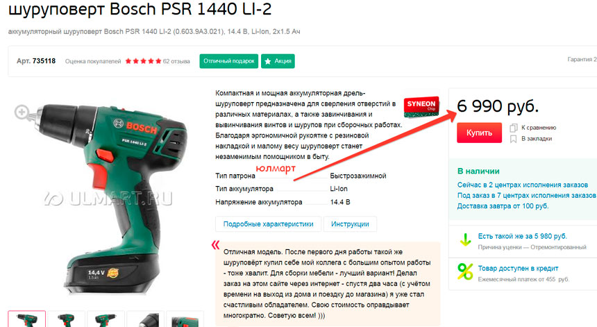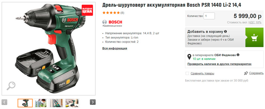 Просто посмотрим на цифры. Шуруповерт Bosch PSR 1440 стоил в магазине Оби 5999 руб.: