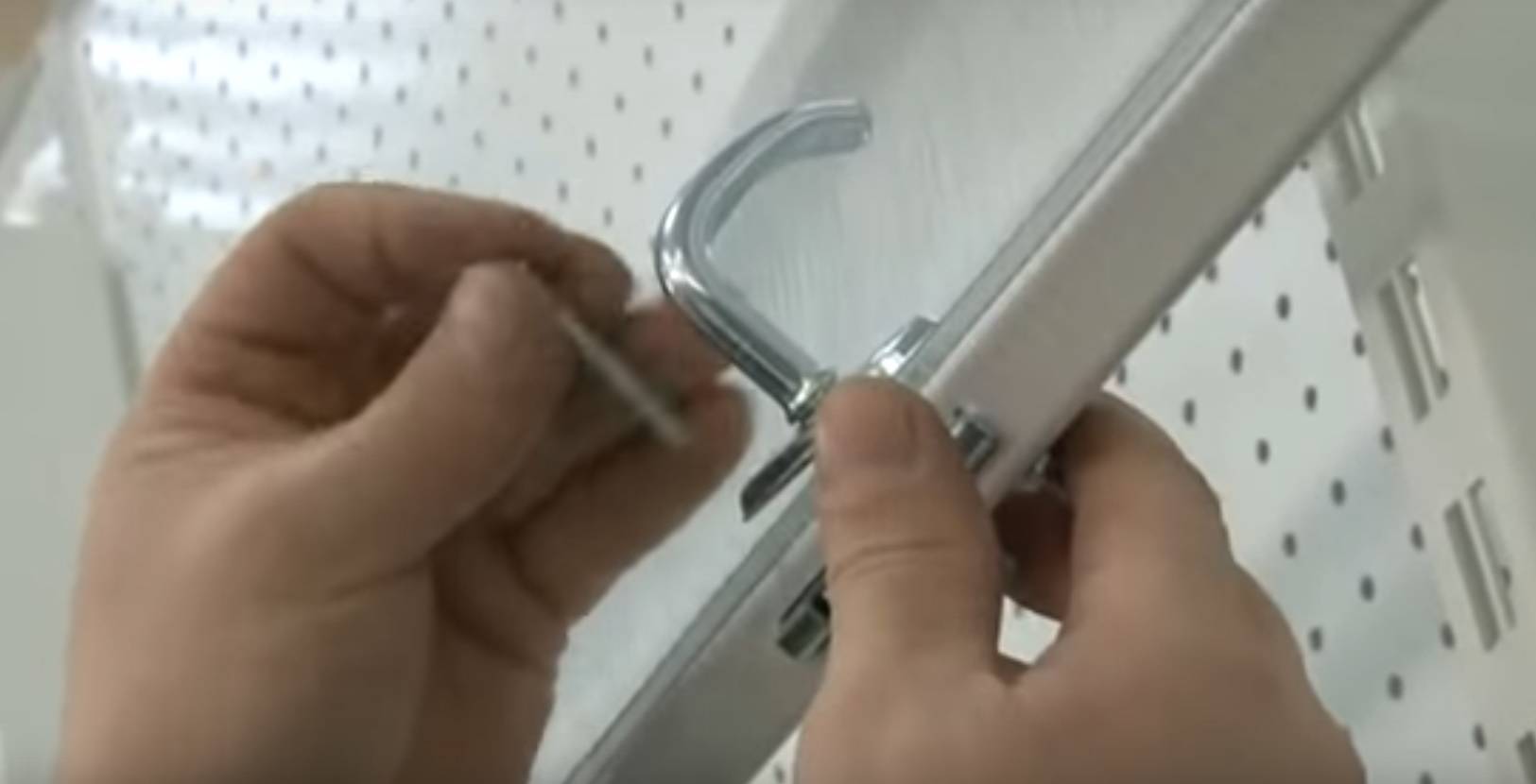 - Закрепляют на форточку и двери по одной ручке и ветровому крючку.