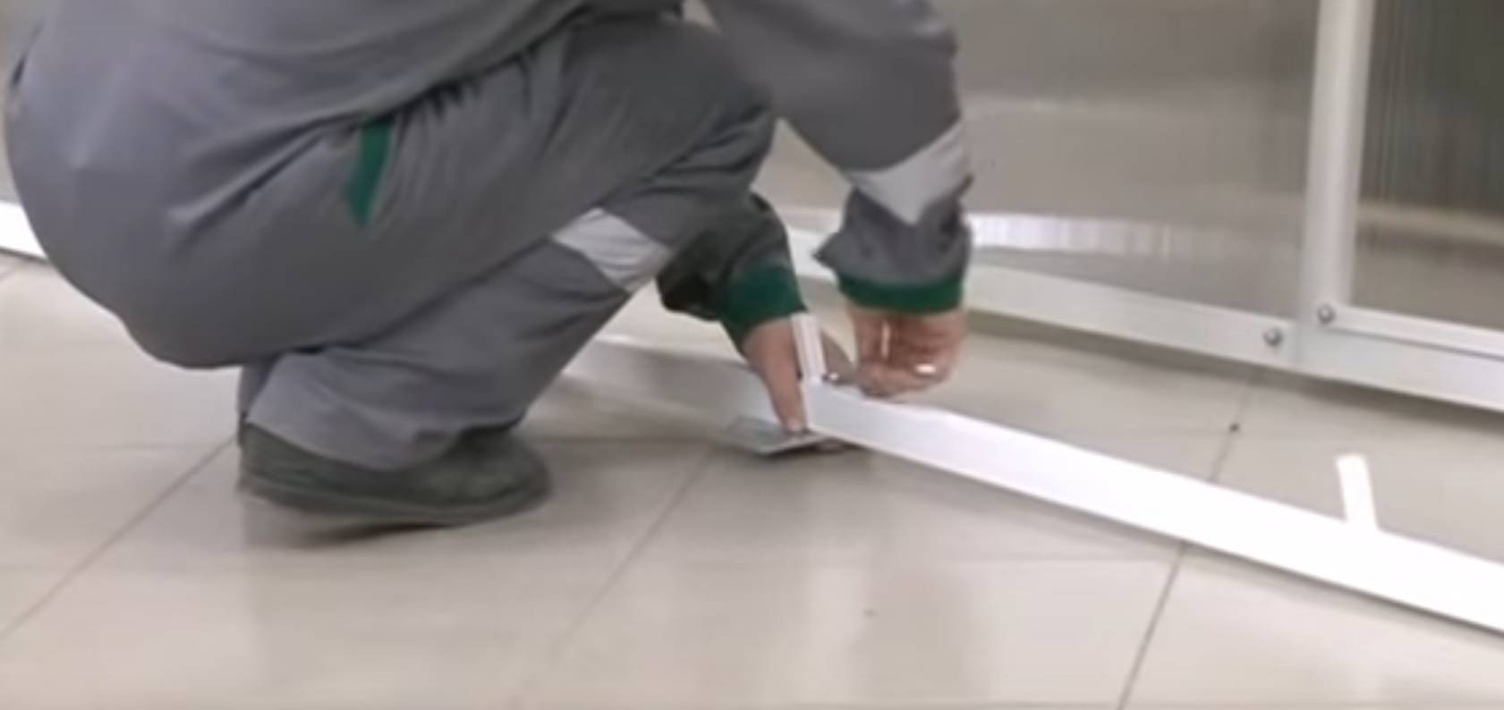 - Прорезают поликарбонат в местах открывания дверей и форточки. Разрез делают посередине профиля, который служит рамкой для двери. Благодаря такой нахлестке, обеспечивается хорошая теплоизоляция. Для лучшего открывания форточки и двери в местах крепления шарниров поликарбонат обрезают. Края срезов подчищают от неровностей и заусениц.