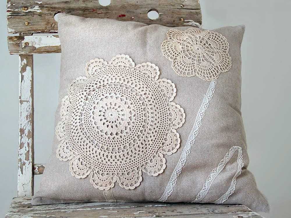Вязаные салфетки из «бабушкиного сундука» можно пришить на уже готовые наволочки из плотного материала. Идеальный хендмейд для дизайна в стиле шебби-шик.