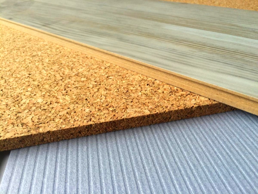 Преимущества пробки – высокая износостойкость и продолжительный срок службы. Использование материала в качестве подложки позволяет добиться равномерной укладки покрытия. Она выступает защитой финишного покрытия от влаги и сырости, поэтому часто используется при выполнении работ на бетонных основаниях.
