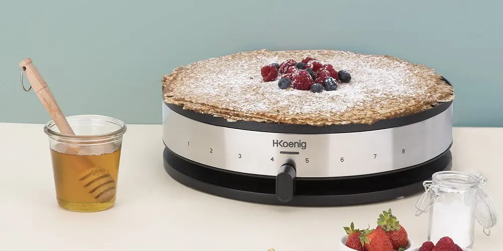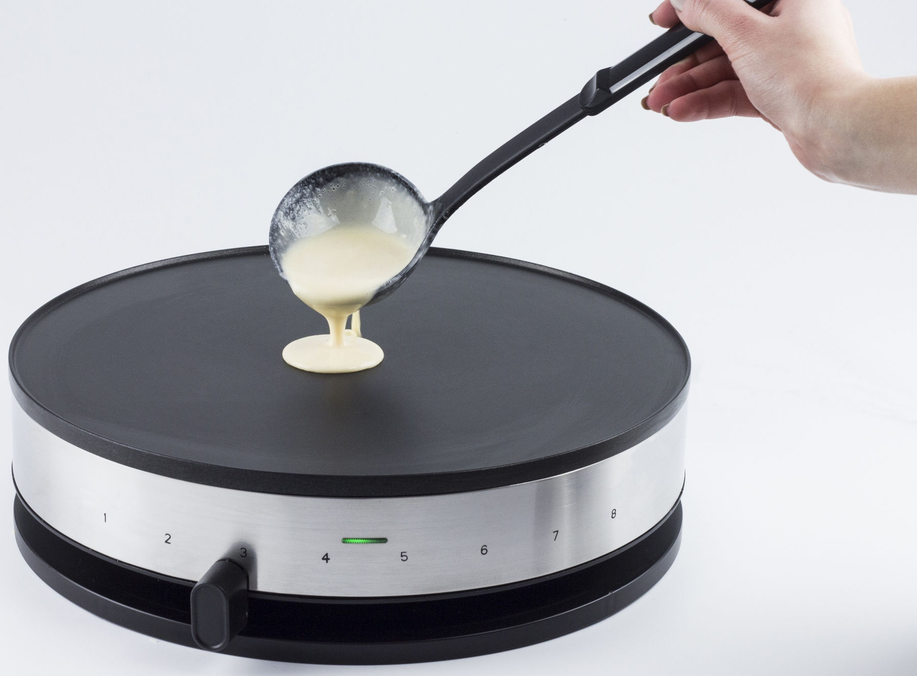Это блинница, у которой достаточно мощности, чтобы блины жарились быстро и равномерно. Ее эргономичность и множество доступных аксессуаров делают блинницу полноценным устройством.