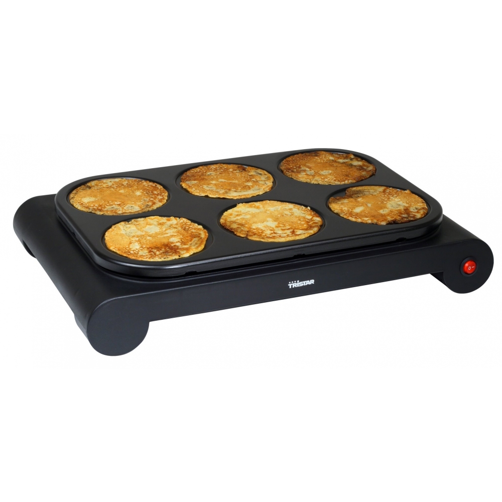 10 место в рейтинге занимает блинница классического типа Tristar BP-2827 (Нидерланды, компания Tristar Europe B.V.). Она выполнена в виде столика на нескольких ножках. Блинный аппарат имеет 6 форм, что позволяет приготовить за 1 подход 6 блинчиков, благодаря чему весьма актуален для большой семьи.