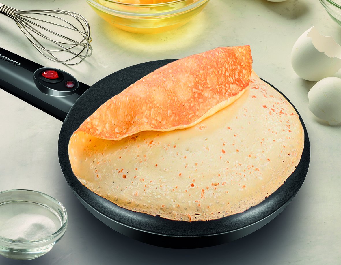 Многие зададут вопрос — а чем плоха сковорода? В принципе — ничем, но она позволяет испечь только 1 блинчик за раз, требует больше времени для жарки, равномерного распределения теста и ручной настройки температурного режима. К тому же переворачивать блинчик на сковороде не слишком удобно, нужна определённая сноровка. Иное дело электрическая блинница — блинчики всегда получаются ровненькими, румяными и хорошо прожаренными, благодаря функции автоматического терморегулирования для разного теста.
