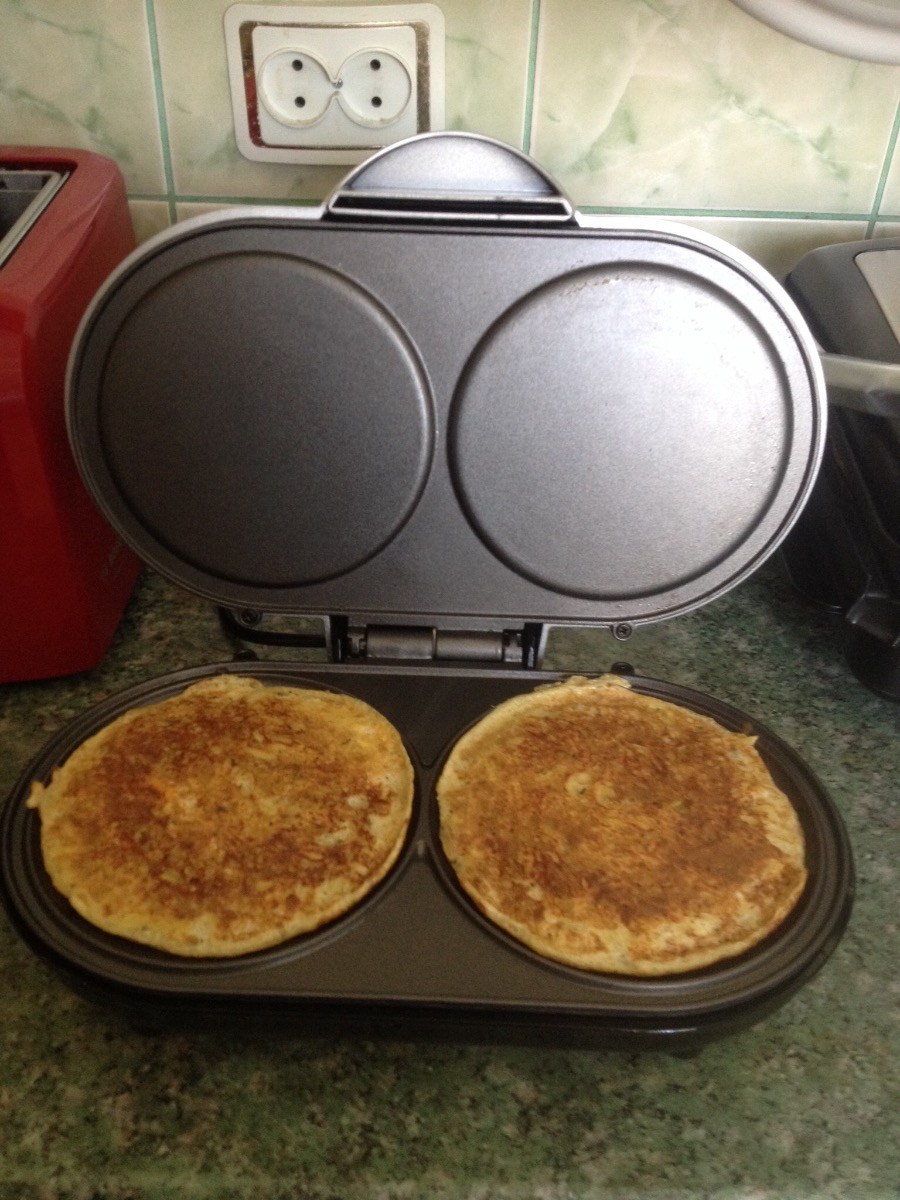 Вначале нужно несколько попыток, чтобы блины красиво пропеклись из-за еще нового покрытия.