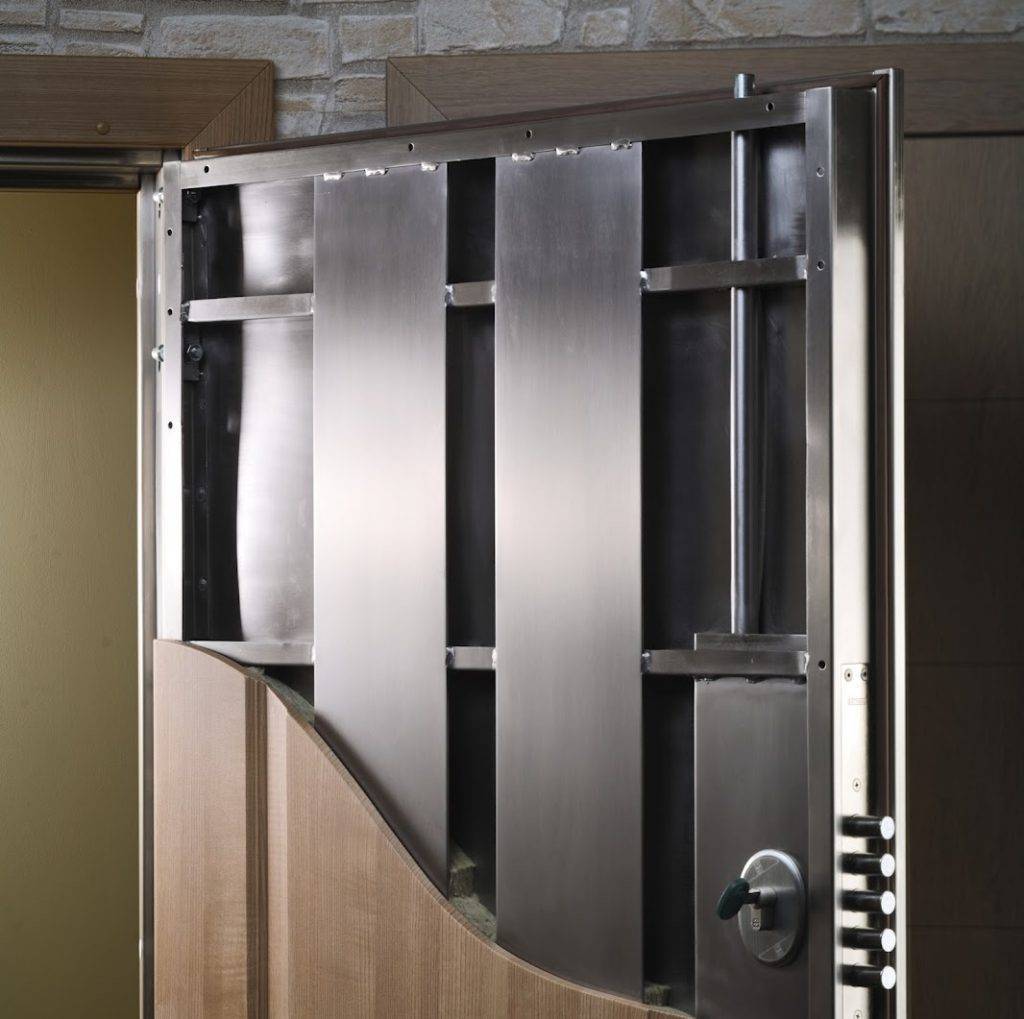 - 4 класс – усиленная стальная пластина до 3,0 мм, броненакладки на замки, толстый слой утепления – для установки в коттеджах.