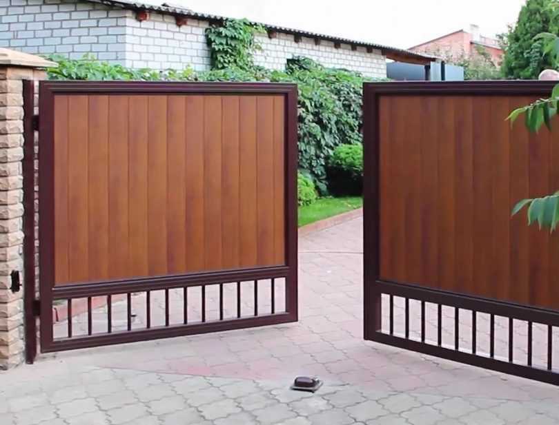 Многих владельцев частных домов интересует, как построить ворота из профнастила своими руками и какой выбрать проект. Наиболее распространены различные конструкции распашных ворот, состоящих из двух створок, которые могут открываться внутрь или наружу и используются для проезда транспортных средств. Для входа и выхода обустраиваются распашные ворота с калиткой из профнастила с учетом веса. Это даст возможность удобной эксплуатации конструкции.