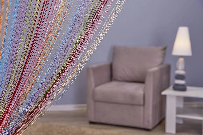 Нитяной тюль для зонирования, разграничения углового пространства комнатыИсточник hoff.ru