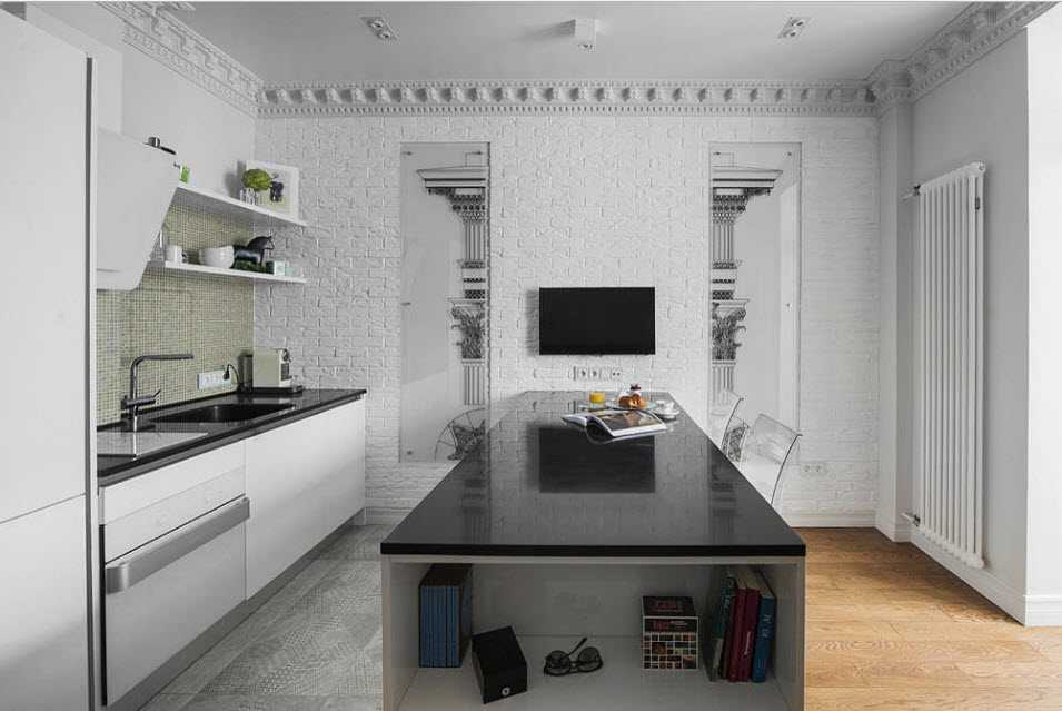 Дизайн ниши и её отделка практически ничем не ограничены — она может иметь любую форму, полки, декор. В зависимости от стиля и интерьера помещения выбирают материал отделки.