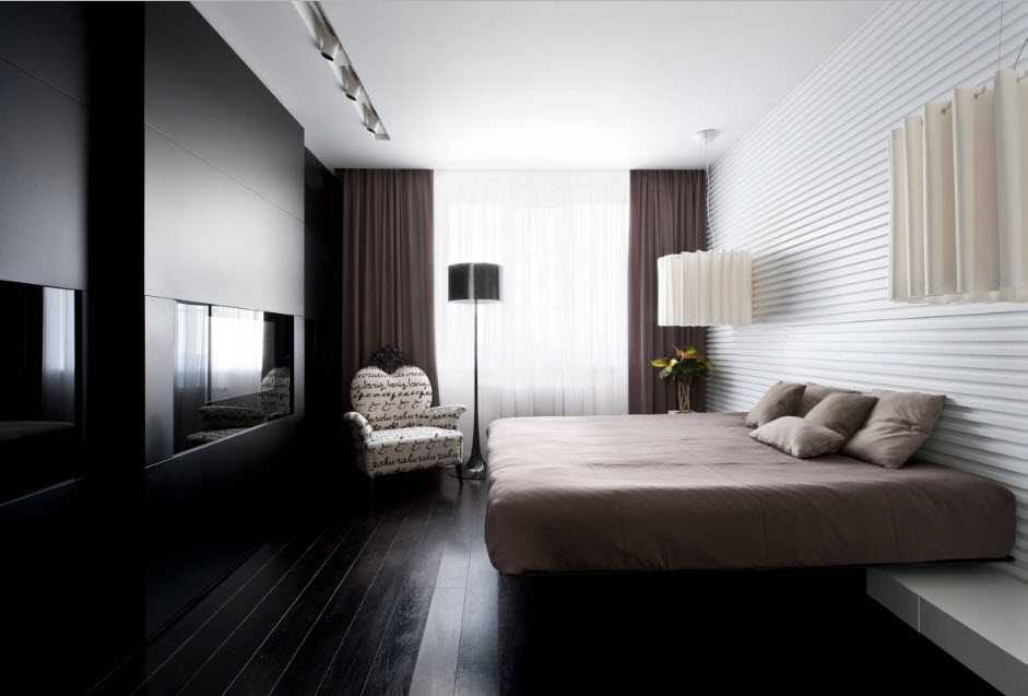 Стена будет привлекать внимание, тогда черный экран телевизора не будет смотреться в комнате угрюмо