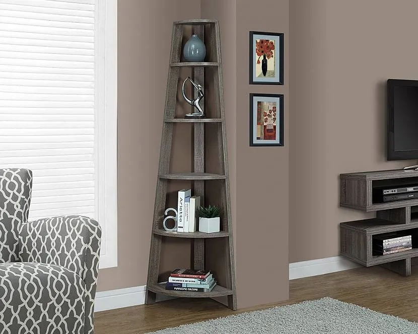 Стеллаж формы конуса идеально занимает пространство малого угла в гостинойИсточник kakpostroit.su