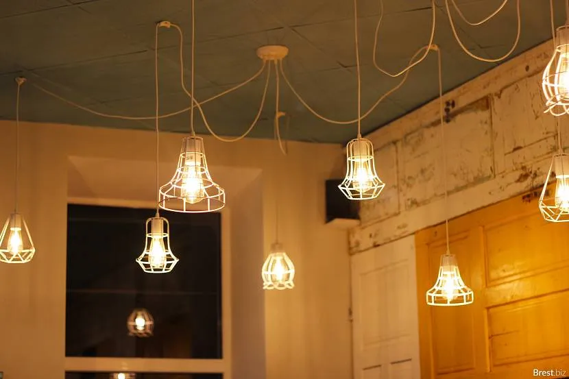 Оригинально смотрятся подвесные на шнурах лампы в стиле лофтИсточник brest.biz