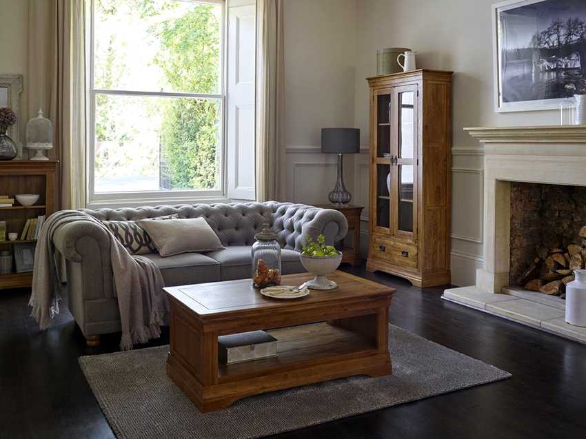 В зависимости от площади гостиной и стиля подбирают соответствующую модель: