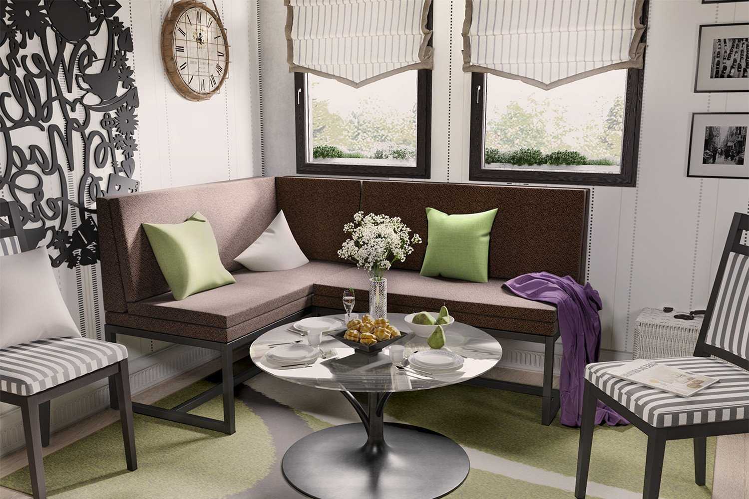 Таким образом, если в квартире или доме маленькая кухня, рекомендуется сделать диван с одним углом, который сэкономит место и органично впишется в кухонный интерьер.