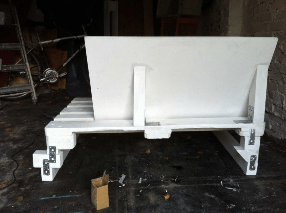 - Делают две одинаковых отдельных части дивана из поддонов. Для этого между собой скрепляют такое количество поддонов, чтобы получилось изделие нужной длины и ширины.