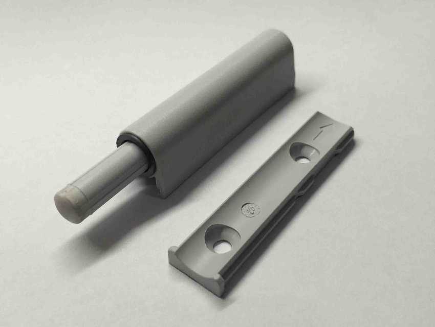 - На основе пружины. Считаются самой популярной и простой разновидностью. Для изготовления пружины, притягивающей и отталкивающей дверцу, используется прочный металл. Устройство обладает практичностью и долговечностью. Из минусов выделяют невозможность фиксации дверки в произвольном положении, она должны быть либо закрытой, либо открытой.
