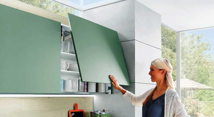 Подъемники устанавливаются на дверцы, которые, либо поднимаются вверх, либо откидываются вниз. На распашной вариант дверей их ставят крайне редко. Если раньше такая фурнитура монтировалась только на элитную мебель, то с развитием технологий и не без помощи китайских друзей эти лифты уже есть на каждом втором гарнитуре.