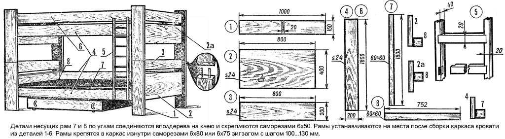 Чертежи разборной двухъярусной детской кровати