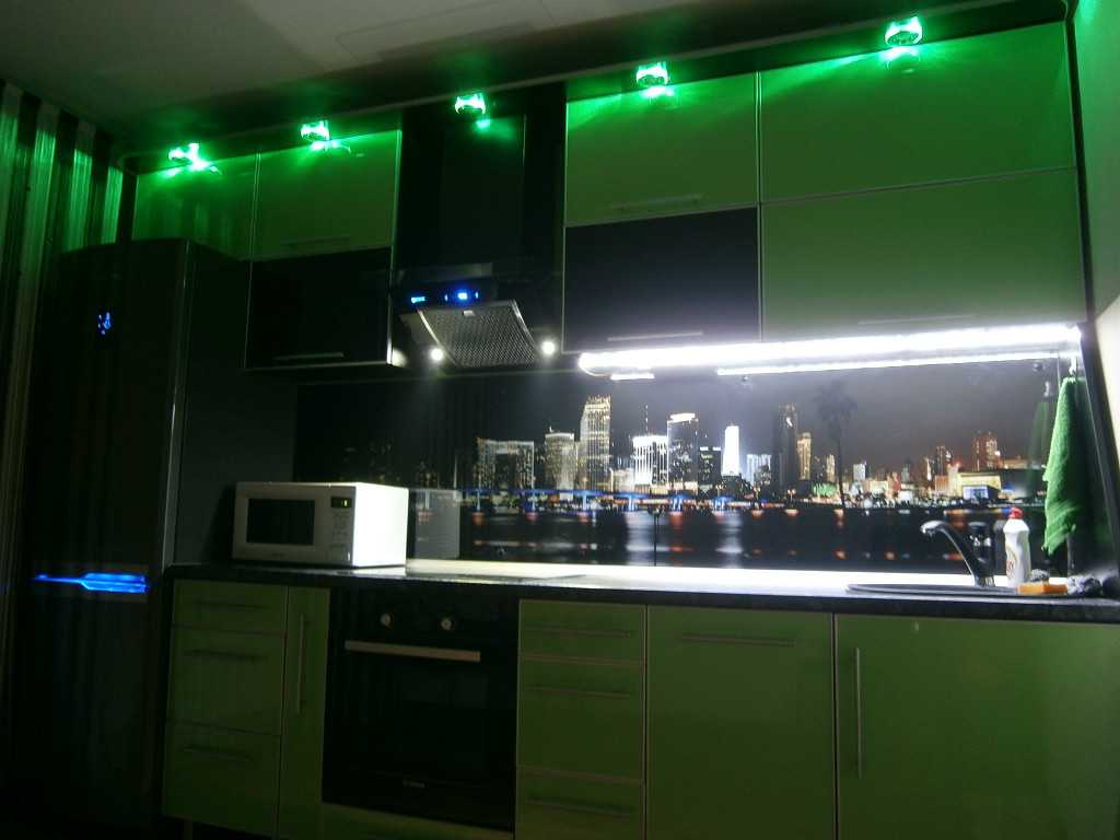 На первом этапе следует определиться с необходимой длиной ленты и выбрать цветовую палитру. Если кухонные шкафы имеют глянцевую поверхность, идеальным решением станет дневной или белый свет.