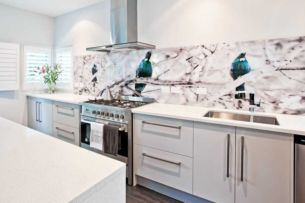 - Стеклянный фартук не стоит устанавливать до того, как ремонт полностью завершён. Данную конструкцию лучше всего заказывать, когда все остальные работы сделаны. Это позволит подобрать оптимальные габариты. К тому же подобный подход позволит выбрать лучшее изображения под общий дизайн вашей кухни.