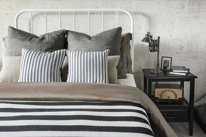 Дополните интерьер кровати декоративными подушками, чтобы разбавить композицию.