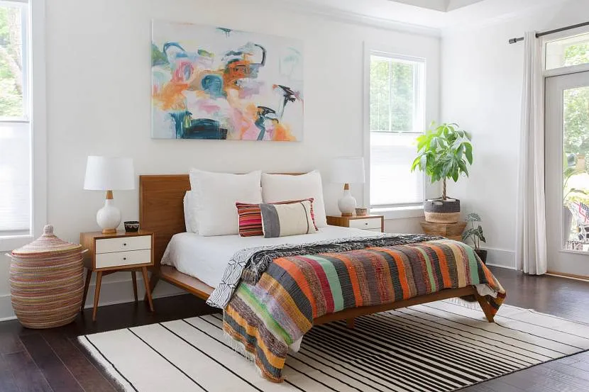 Свяжите кровать с остальной частью спальни, выбрав подушки и покрывала дополнительных цветов. Или используйте его как возможность добавить в комнату немного сезонного цвета.