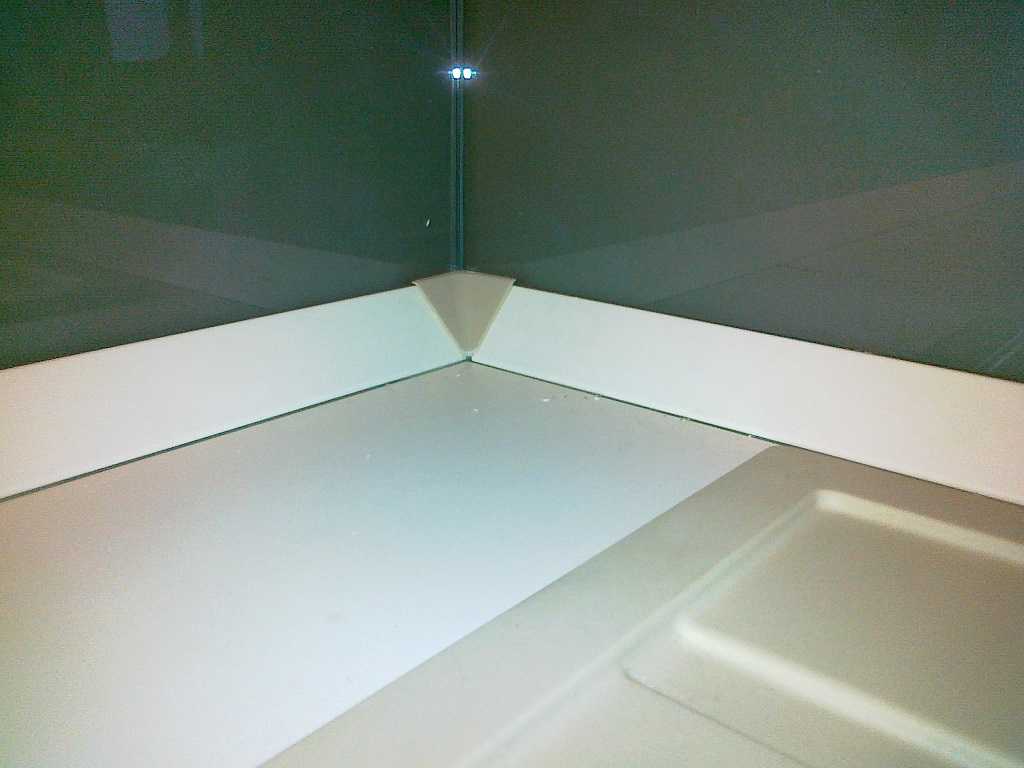 - Не использовать герметики, жидкие гвозди. Потому, что пространство между плинтусом и поверхностью стола, очень скоро потеряет привлекательный внешний вид. Грязь неизбежно будет скапливаться в микроскопическом пространстве, а удалить скопление грязи из под намертво склеенных поверхностей невозможно. Сложно заменить надоевший плинтус на новый.