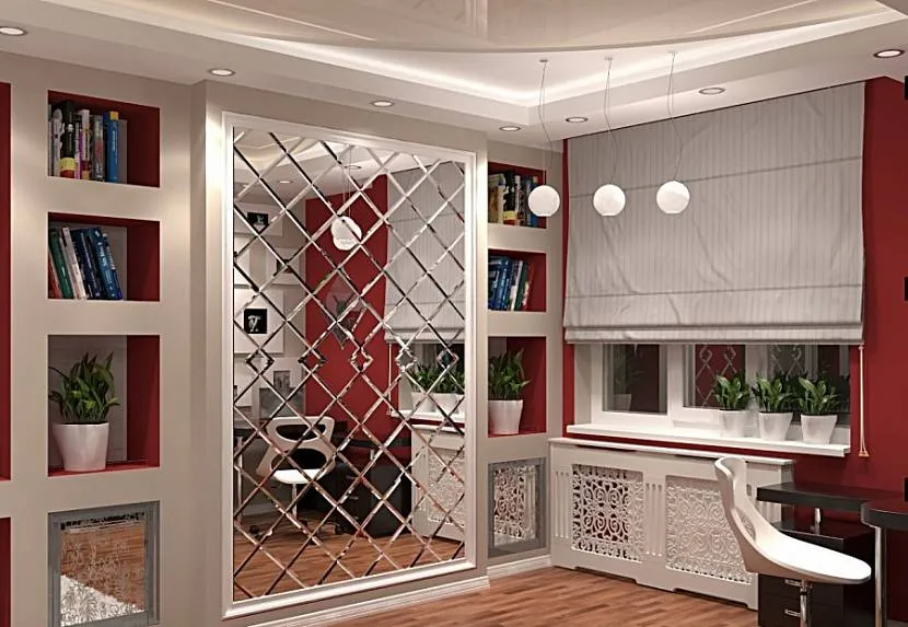 Предварительно, еще до начала переделки, надо обратить внимание на рекомендации дизайнеров и строителей, если такой возможности нет – проконсультироваться с продавцом магазина товаров для строительства. В просторной нише можно обустроить кабинет с полками для книг