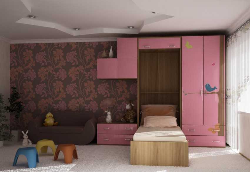 Стенка с нишей может располагаться не только в спальне, но и в детской